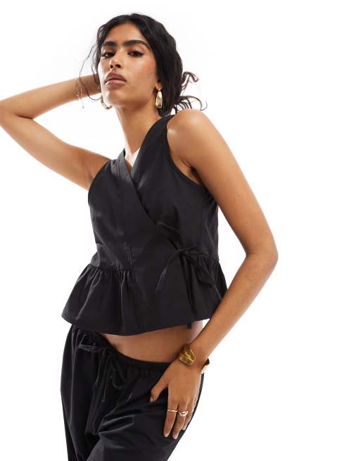 ASOS DESIGN - Swingtop met overslag van popeline in zwart