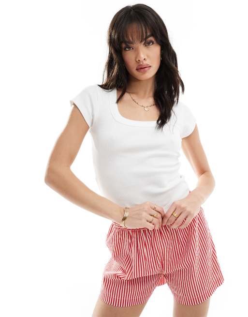 ASOS DESIGN - T-shirt met dikke bies en vierkante hals in wit