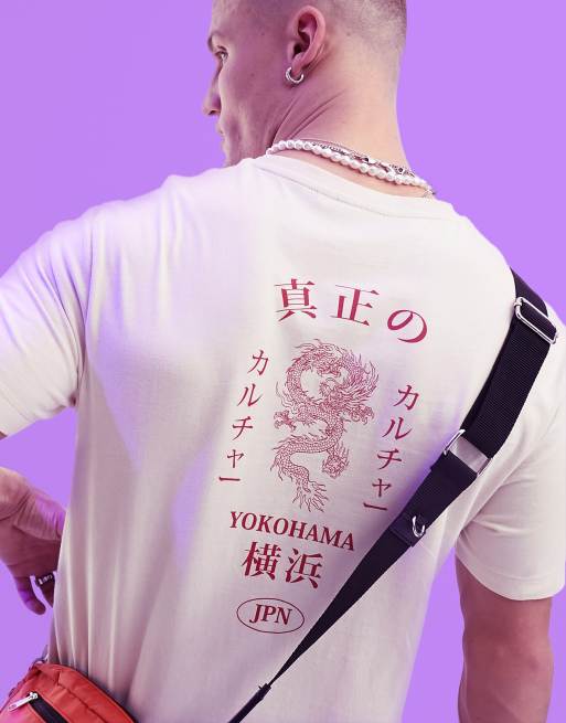 ASOS DESIGN - T-shirt met print op de achterkant in gebroken wit