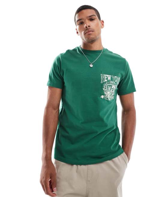 ASOS DESIGN - T-shirt met print op de borst en zak aan de voorkant in groen