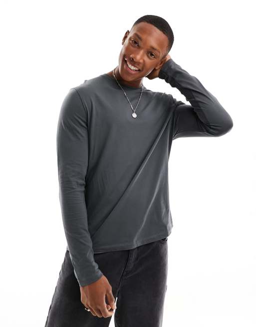 ASOS Design - T-shirt met ronde hals en lange mouwen in grijs