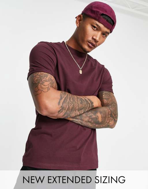 ASOS DESIGN - T-shirt met ronde hals en omgeslagen mouwen in bordeaux