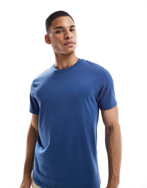ASOS DESIGN - T-shirt met ronde hals van zware stof in middenblauw