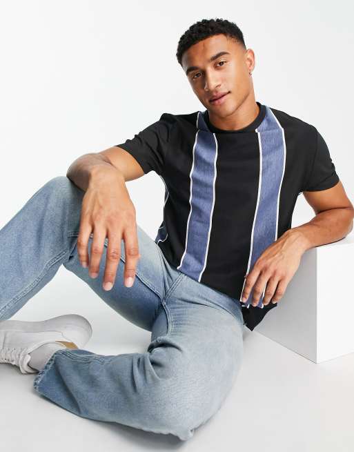 ASOS DESIGN - T-shirt met verticale strepen in zwart en blauw