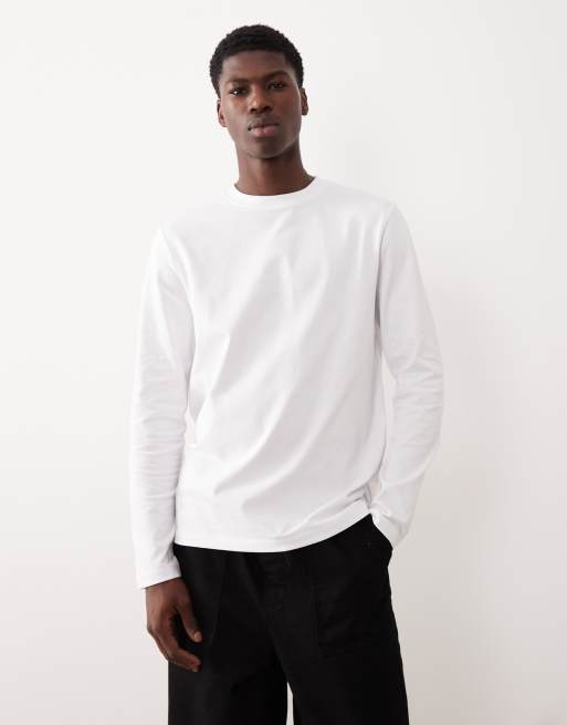 ASOS DESIGN - T-shirt van zware stof met lange mouwen en ronde hals in wit