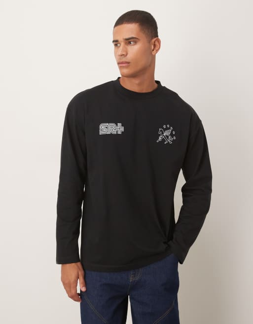 ASOS DESIGN - T-shirt van zware stof met lange mouwen en straatprint in zwart