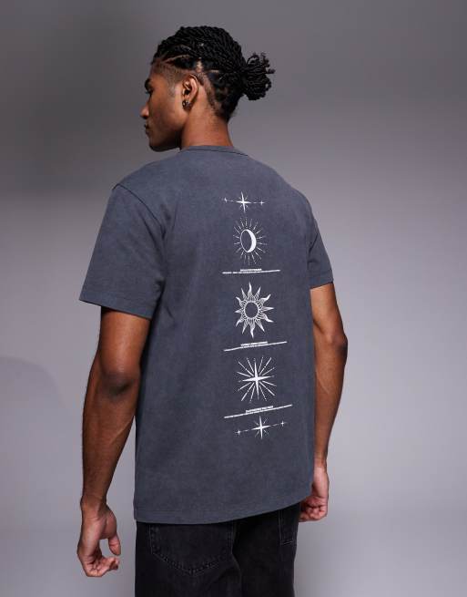 ASOS DESIGN - T-shirt van zware stof met print van hemellichamen in zwart met wassing