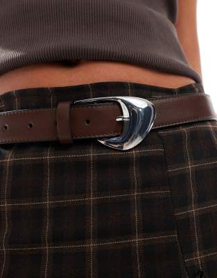 ASOS DESIGN - Taille- en heup-jeansriem met hoekige gesp in chocoladebruin