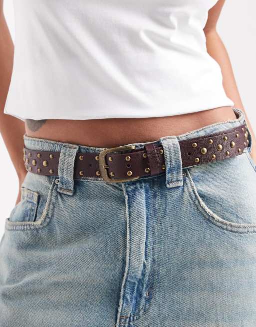 ASOS DESIGN - Taille- en heupriem met studs in bordeauxrood