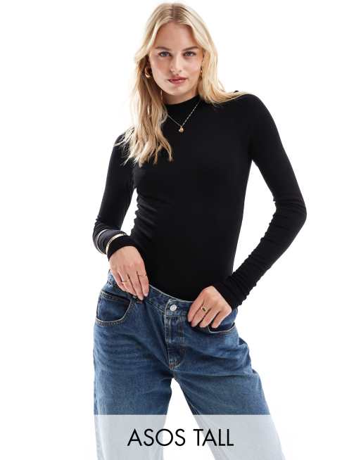 ASOS DESIGN Tall - Body met lange mouwen en col in zwart