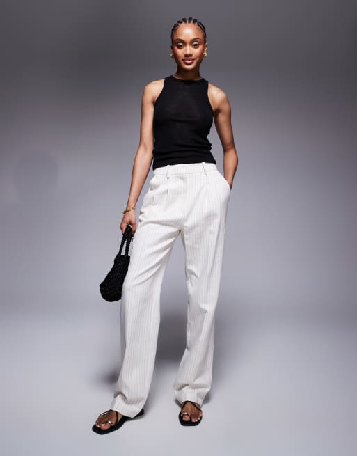 ASOS DESIGN Tall - Elegante broek met rechte pijpen en geplooid detail in crème met strepen