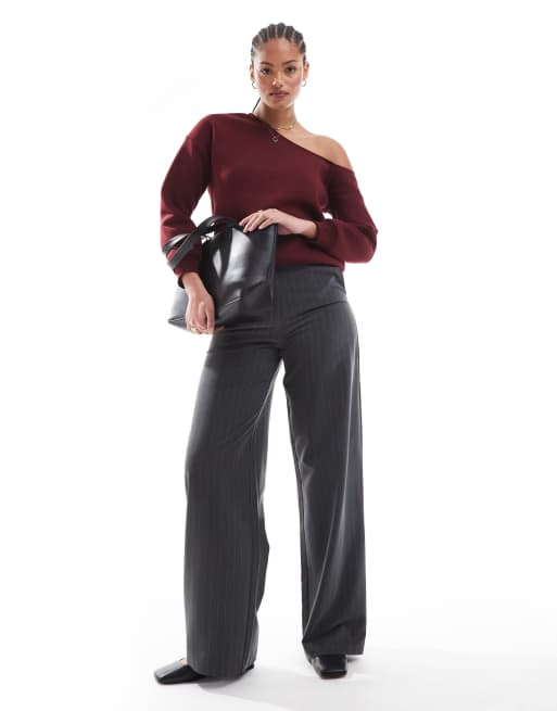 ASOS DESIGN Tall - Elegante ruimvallende broek met rechte pijpen en strepen in antracietgrijs
