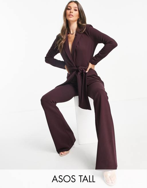 ASOS DESIGN Tall - Jersey colbert met gestrikte obi-riem in wijnrood