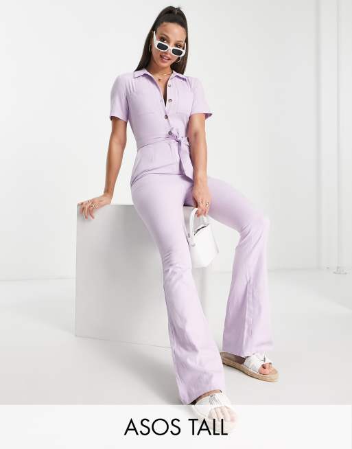 ASOS DESIGN Tall - Kickflare boilersuit in jaren 70-stijl van keperstof in lila