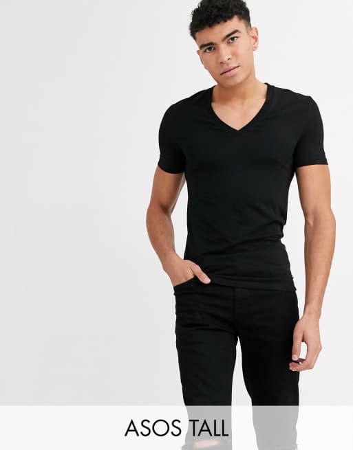 ASOS DESIGN Tall - Muscle fit T-shirt met diepe V-hals in zwart