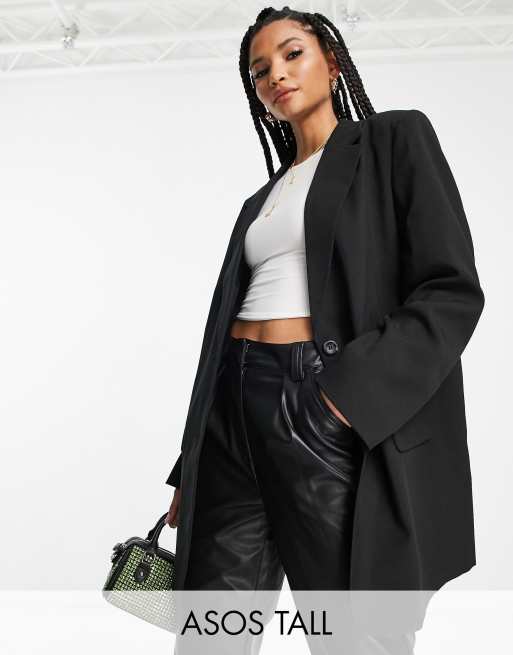 ASOS DESIGN Tall - Rechte oversized grandad blazer in zwart