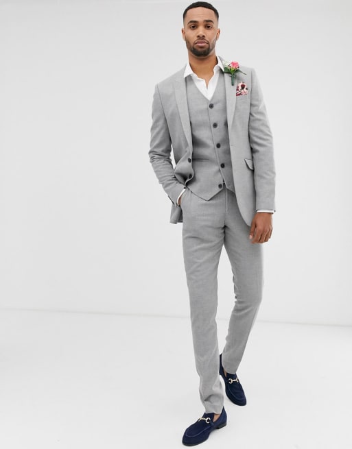 ASOS DESIGN - Tall - Skinny bruiloftskostuum in grijs met microtextuur