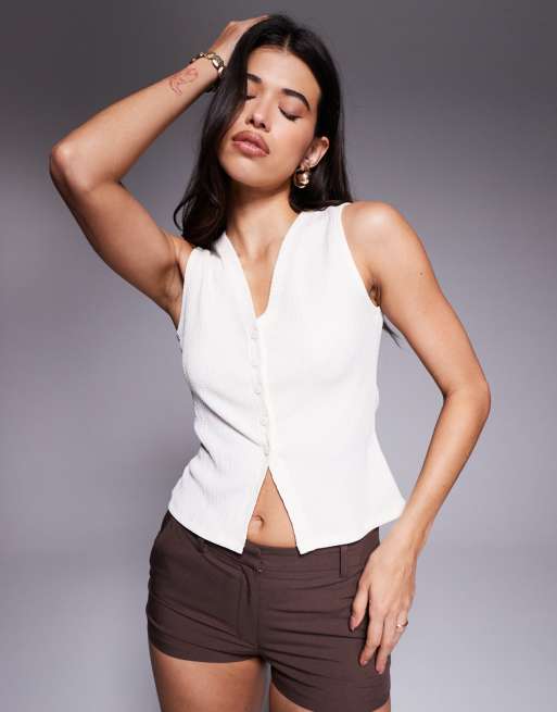 ASOS DESIGN - Tanktop met knopen en V-hals in ivoorwit