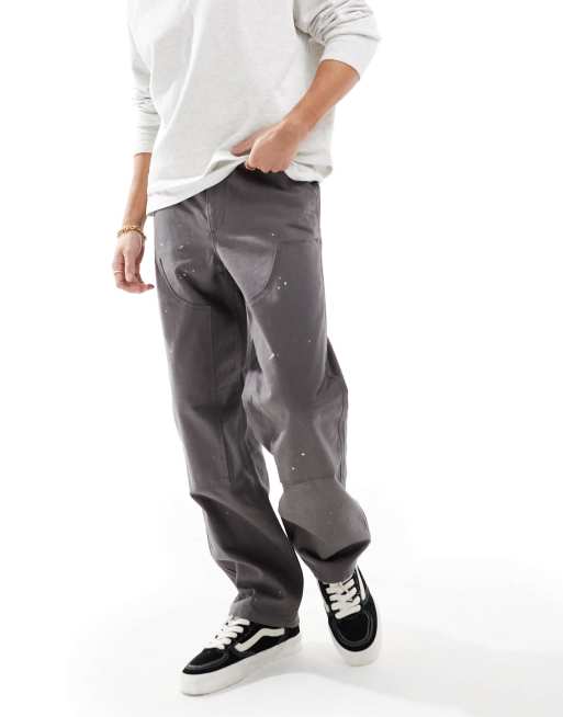 ASOS DESIGN - Timmermansbroek met verfspatten in antraciet