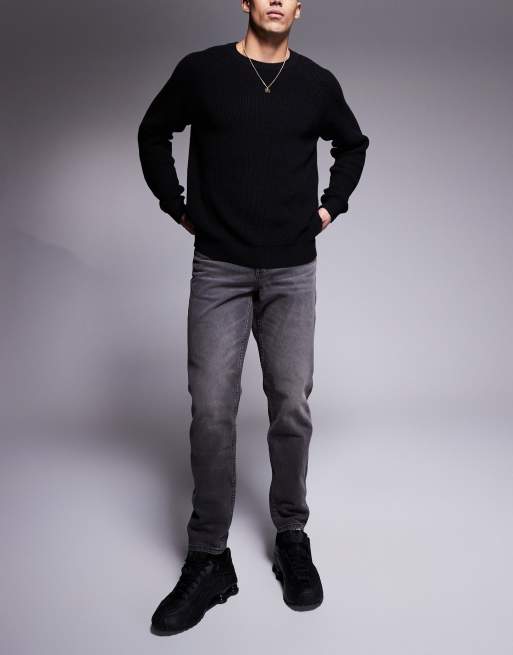 ASOS DESIGN - Toelopende jeans in verwassen zwart