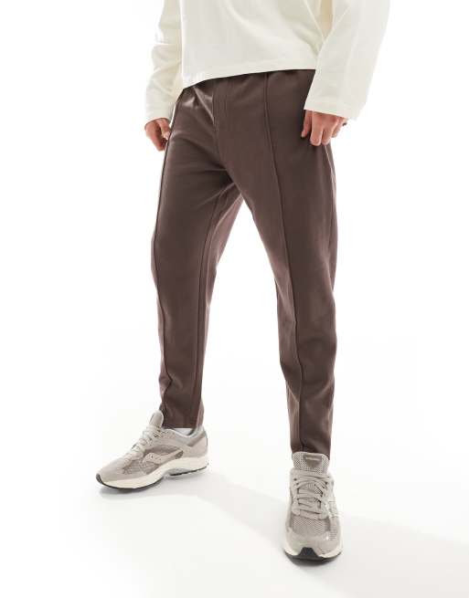 ASOS DESIGN - Toelopende joggingbroek met rits in bruin