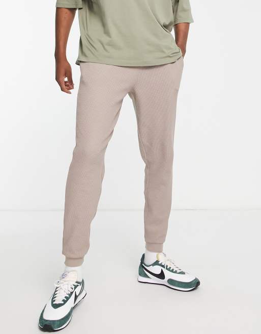 ASOS DESIGN - Toelopende joggingbroek met wafelstructuur in beige