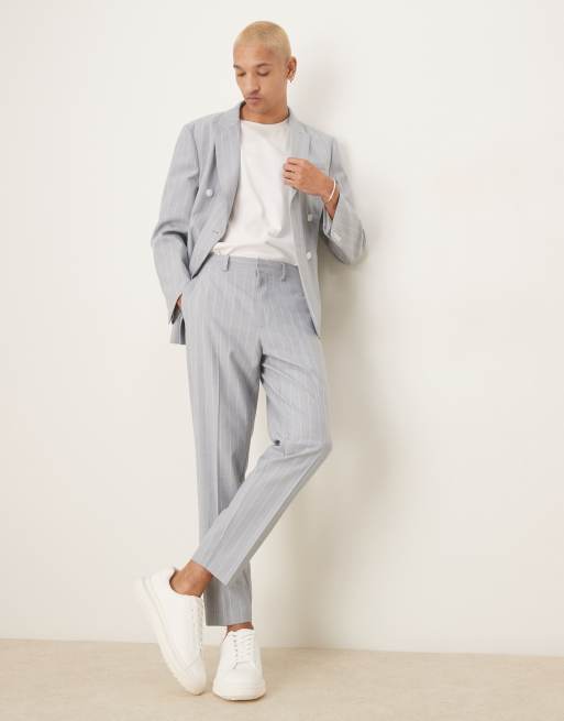 ASOS DESIGN - Toelopende pantalon in blauwe krijtstreep met linnenlook