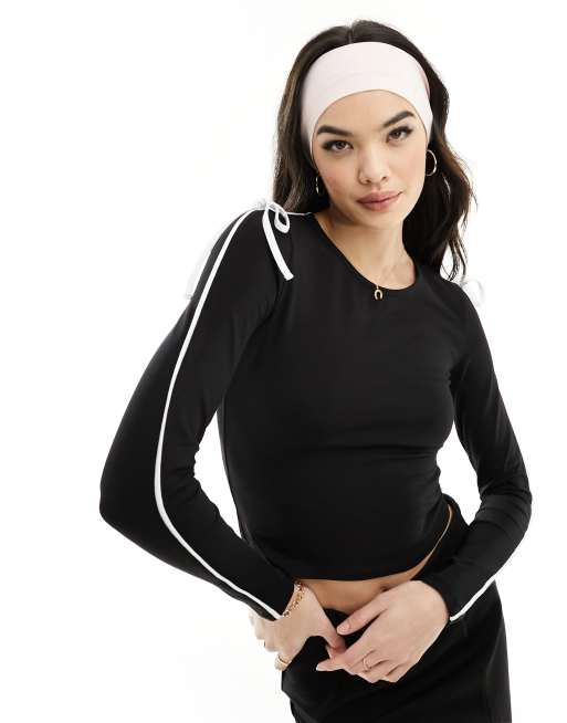 ASOS DESIGN - Top in zwart met strepen en strik in wit