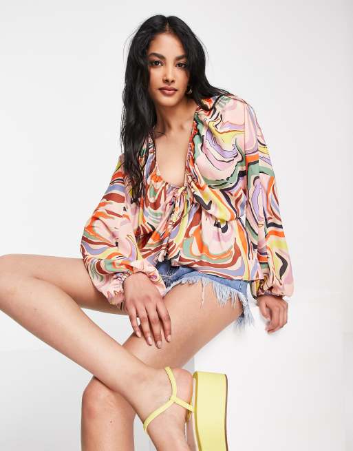 ASOS DESIGN - Top met kimonomouwen en abstracte zebraprint in multi