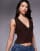 ASOS DESIGN - Top van gladde stof met kanten afwerking en strikdetail in bruin