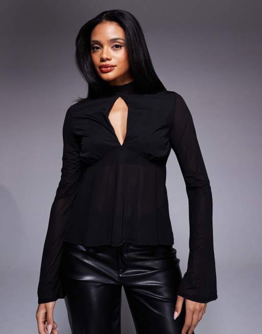 ASOS DESIGN - Top van luchtige mesh met uitlopende mouwen en gestrikte achterkant in zwart