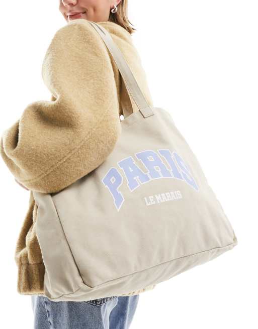 ASOS DESIGN - Tote met Paris-sloganprint in nertsbruin