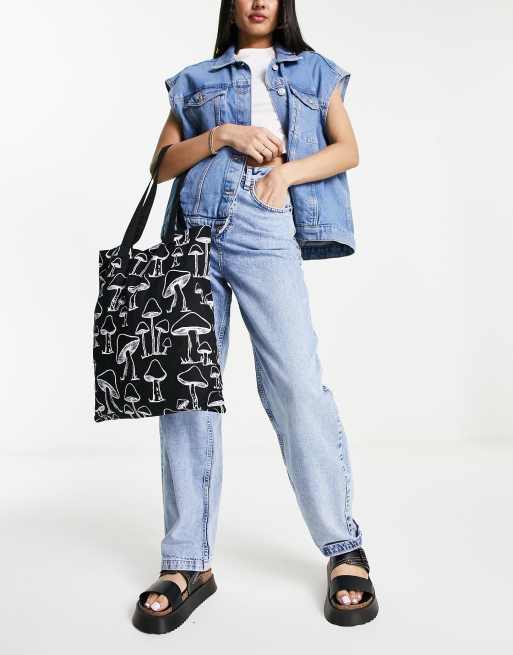 ASOS DESIGN - Tote tas met paddenstoelenprint in zwart
