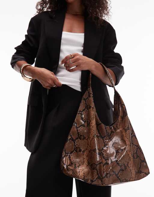 ASOS DESIGN - Tote tas met rond model in bruin slangenprint