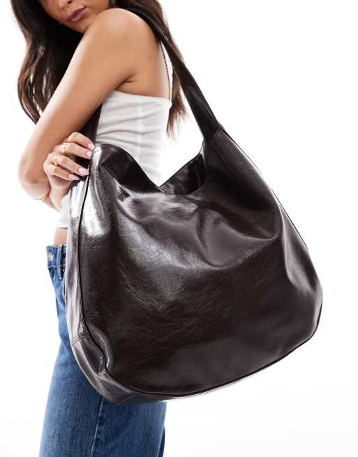 ASOS DESIGN - Tote tas met ronde onderkant in chocoladebruin