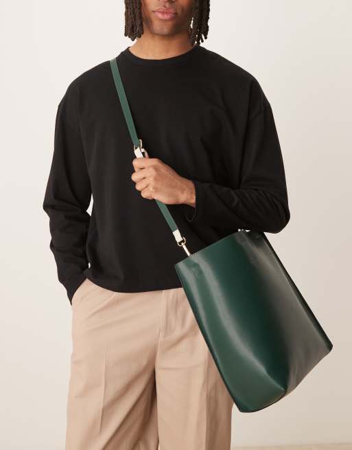 ASOS DESIGN - Tote tas van imitatieleer met crossbody band in groen