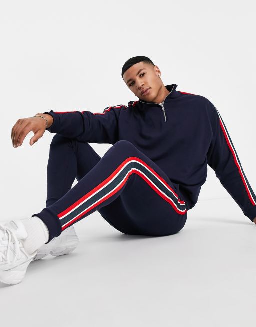 ASOS DESIGN - Trainingspak met biezen & sweatshirt met halve rits in marineblauw
