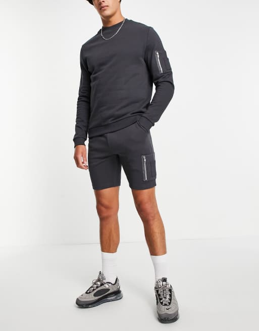 ASOS DESIGN - Trainingspak van sweatshirt en skinny short met MA1 zak in zwart