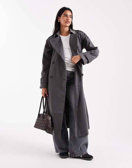 ASOS DESIGN - Trenchcoat met lange pasvorm in antraciet