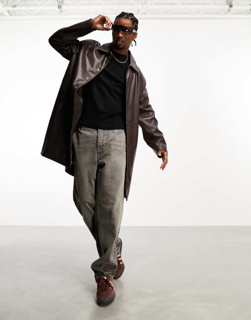 ASOS DESIGN - Trenchcoat van imitatieleer met lange pasvorm in bruin