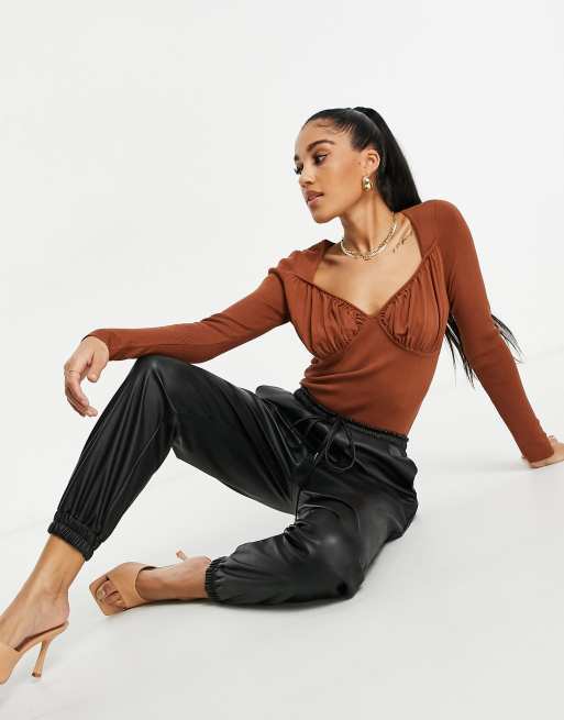 ASOS DESIGN - Trui met gerimpelde cups in bruin