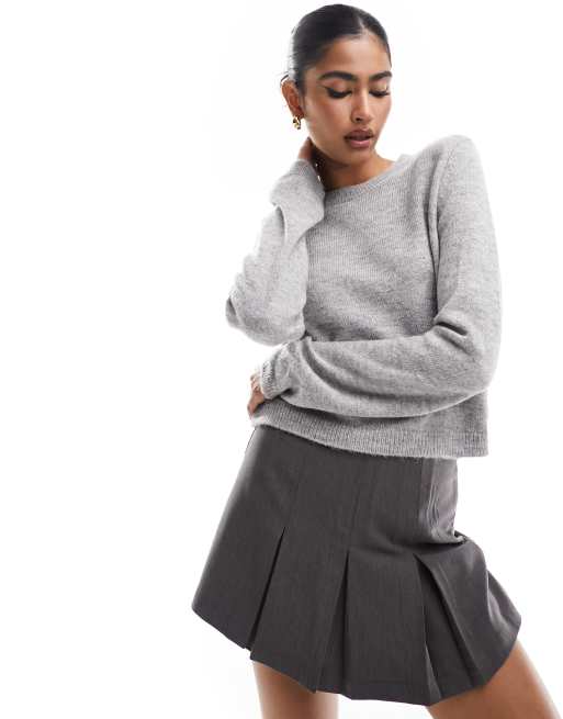 ASOS DESIGN - Trui met gestructureerde schouder met schoudervulling in grijs