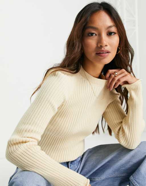 ASOS DESIGN - Trui met ronde hals en contrasterende ribbels in beige
