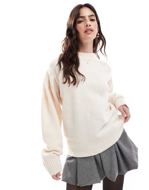ASOS DESIGN - Trui met ronde hals en volumineuze mouwen in crème