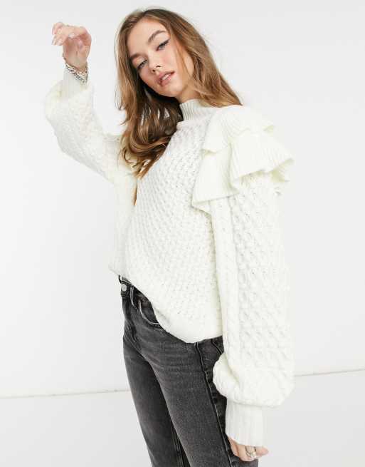 ASOS DESIGN - Trui met structuur en ruches in crème
