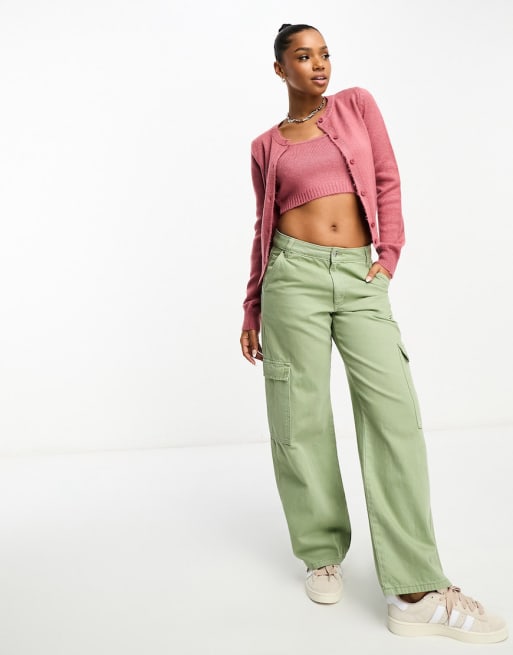 ASOS DESIGN - Twinset van vest en cami met nette pasvorm in roze