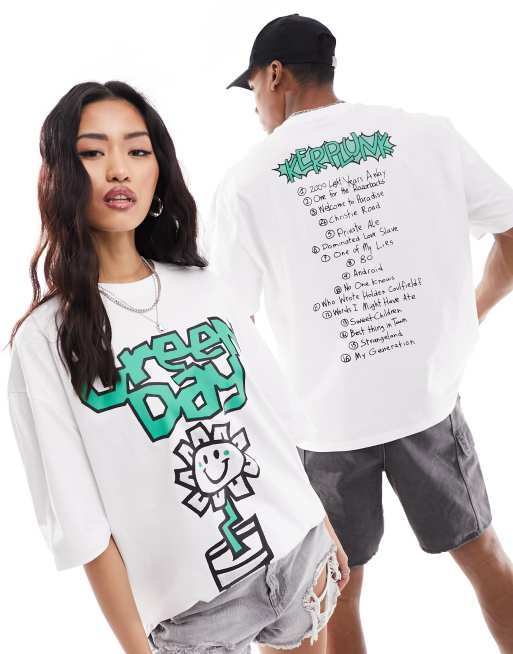 ASOS DESIGN - Uniseks oversized band T-shirt met gelicenseerde Green Day-albumprints in wit