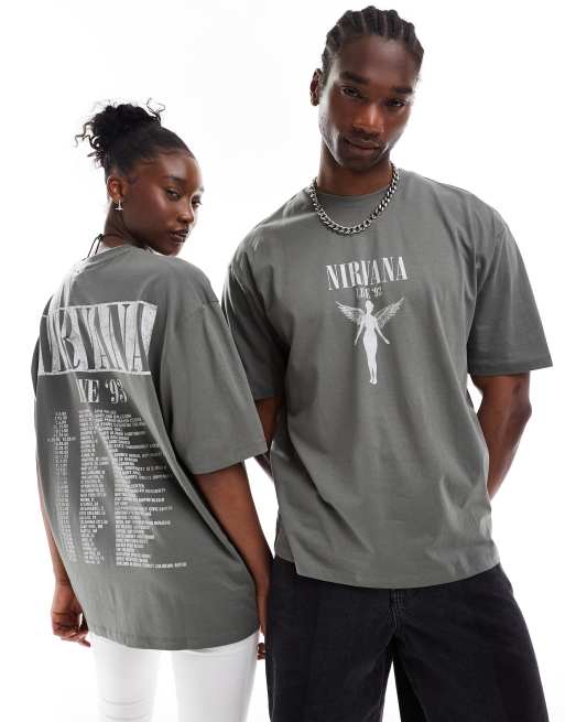 ASOS DESIGN - Uniseks oversized band T-shirt met gelicenseerde Nirvana-tourprints in grijs