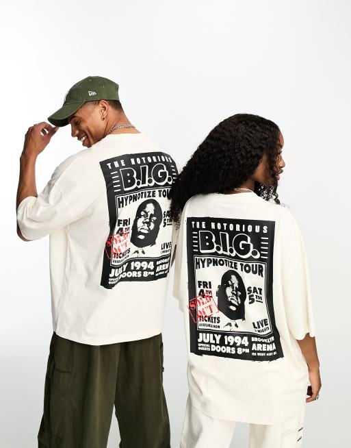 ASOS DESIGN - Uniseks oversized T-shirt met Biggie Smalls-print in gebroken wit