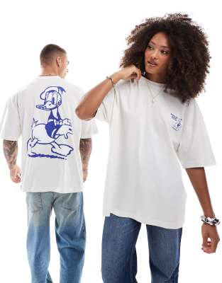 ASOS DESIGN - Uniseks oversized T-shirt met Disney Donald Duck-prints in wit